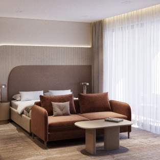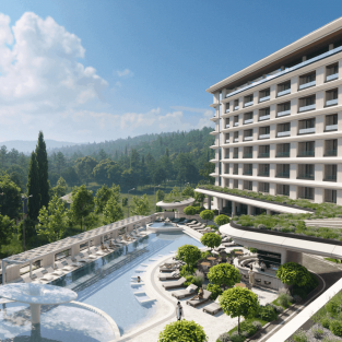 Cosmos Black Sea Riverta Hotel — курортный комплекс бизнес-класса на Черноморском побережье под управлением Cosmos Hotel Group. Это первый сетевой отель высокого уровня на въезде в Туапсинский район — сочетание сильной курортной локации и надежности федерального бренда. Для инвестора это рост капитала уже на этапе строительства и стабильный пассивный доход от аренды после ввода. Современный 8-этажный корпус выполнен в элегантной архитектуре: фасады облицованы натуральным травертином, акцент сделан на панорамное остекление, просторные балконы и вечернюю архитектурную подсветку. Из окон открываются виды на море и Национальный парк. Территория площадью ~0,6 га спроектирована для комфорта и приватности: благоустроенные зоны отдыха с ландшафтным дизайном, около 30% площади занимает озеленение, действует круглосуточная охрана. Для гостей создана полноценная инфраструктура: подогреваемый бассейн с отдельной детской зоной, джакузи, терраса для загара с лежаками и pool-баром, что позволяет наслаждаться отдыхом круглый год. Для детей предусмотрены открытая площадка и крытая игровая зона с анимацией, а для автовладельцев — подземный паркинг на 50 машино-мест. Cosmos Black Sea Riverta Hotel — это инвестиция в комфорт, престиж и будущее.